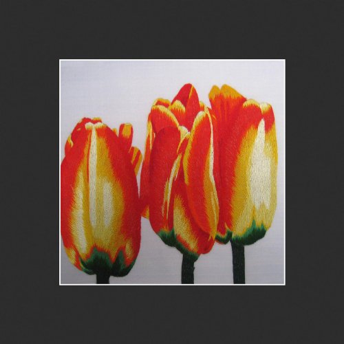 Susho, King Silk Art 100% Handmade Silk Embroidery - Three Blooming Tulips - Black Mat Unframed Medium Size 36126B Review