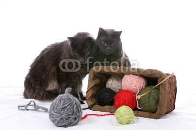 Wallmonkeys Peel and Stick Wall Decals - Two Black Cats Looking at an Overturned Basket of Yarn. - 24"W x 16"H Removable Graphic Feature
