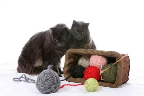 Two Black Cats Looking at an Overturned Basket of Yarn. - 18"W x 12"H - Peel and Stick Wall Decal by Wallmonkeys Review