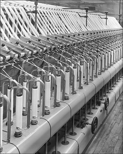 - Image Description: A seemingly never-ending bank of winding machines for acrylic yarns at Patons a Baldwins factory in Darlington. Patons a Baldwins was a leading British manufacturer of knitting yarn. Photograph by Heinz Zinram.