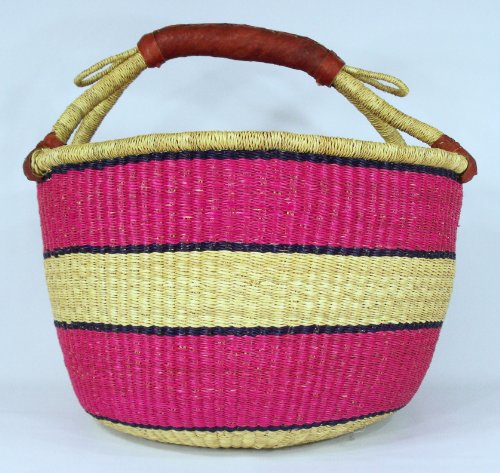 - Materials: Elephant Grass Very Durable, Natural Dyes, Hand Stitched Leather Handle
